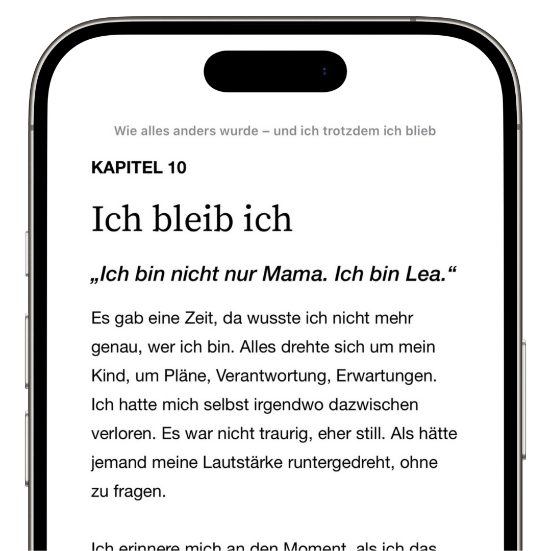 Für alle, die echte Geschichten mögen – ehrlich, ruhig, nah. Egal ob du selbst Mutter bist oder einfach jemanden suchst, der versteht, wie sich Veränderung anfühlt.